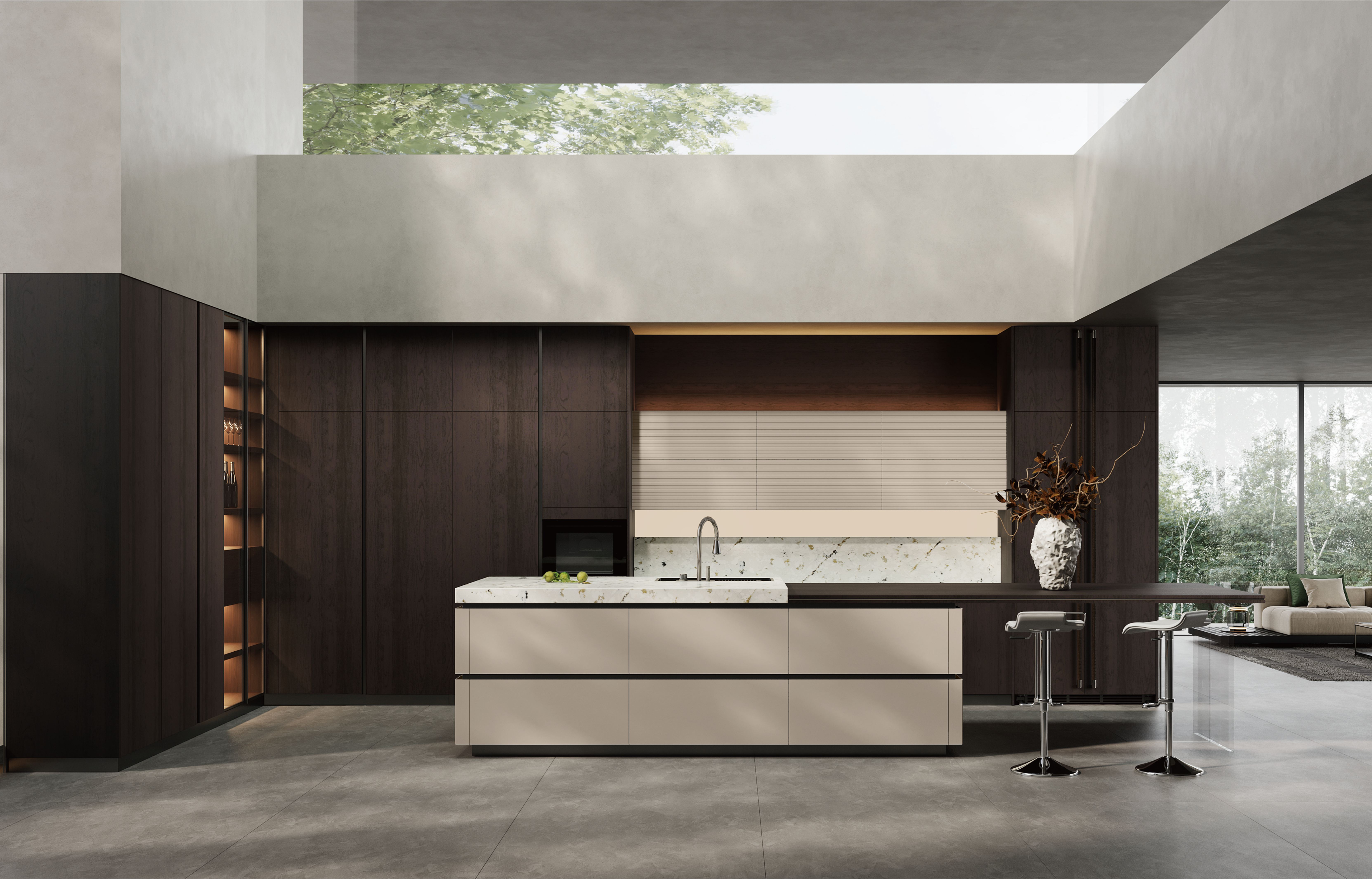 通过尊龙凯时厨柜量体裁柜,定制出适合主厨下厨的烹饪区和洗涤区的舒适高度。